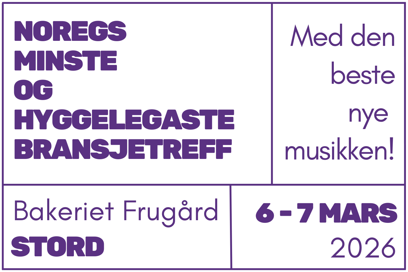 Du fÄr den beste nye musikken frÄ vestlandet og hÞve til Ä mÞte band og artistar direkte. Med to konsertscenar vegg i vegg gÄr du ikkje glipp av ein einaste konsert.